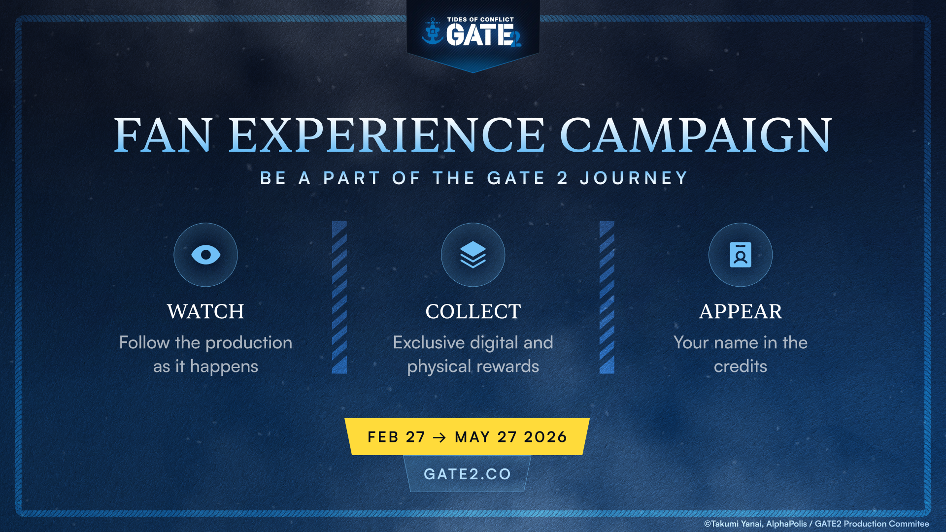 Everything you need to know about the GATE 2: Tides of Conflict campaign on Oshi. The anime is already in production. Your participation unlocks access and rewards.