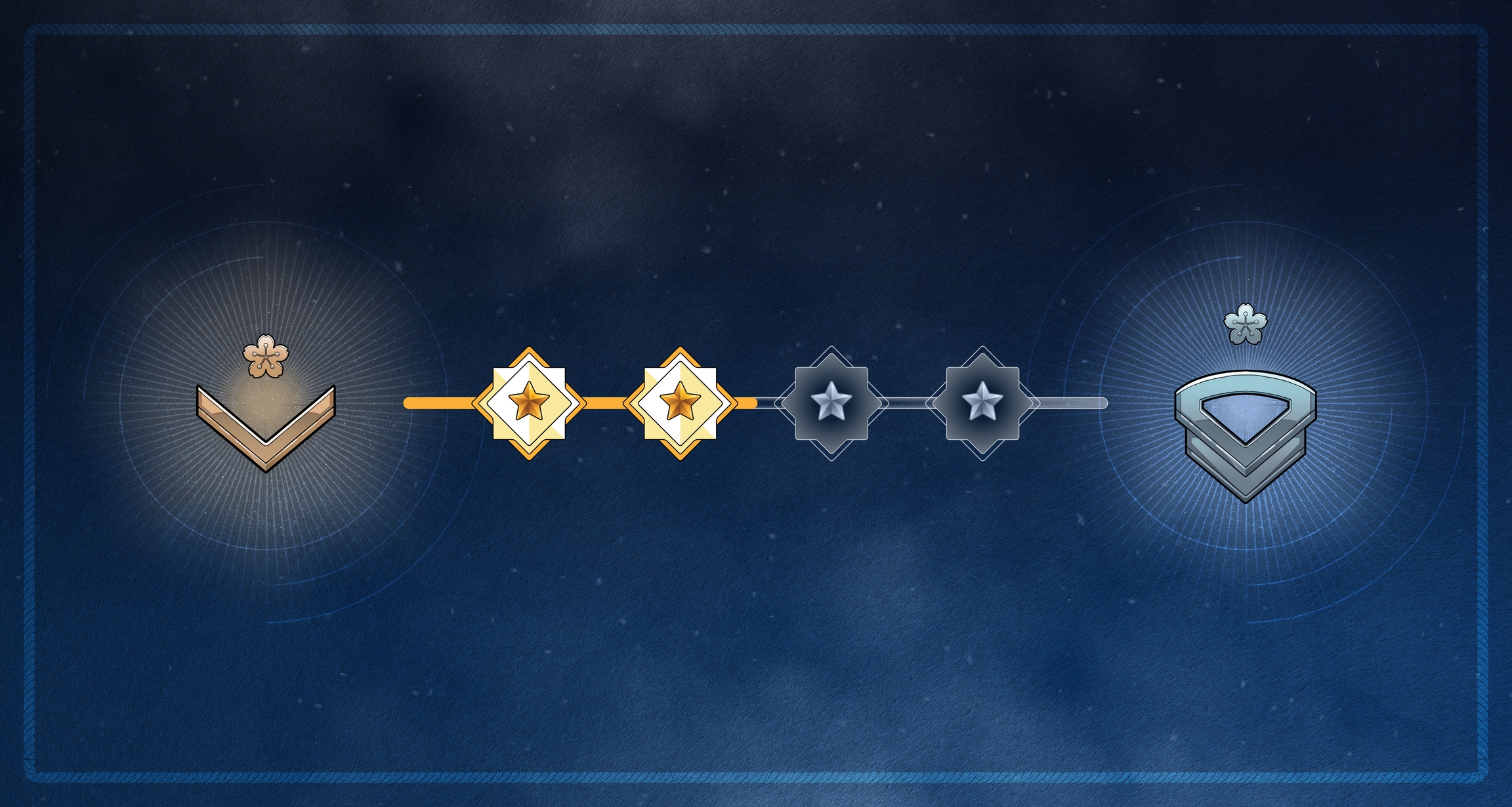 Rewards are cumulative through the lower and mid tiers: reaching Chief Petty Officer means you receive everything from Seaman and Petty Officer as well. At Officer tiers (Commander, Captain, Admiral), certain limited and experiential rewards are exclusive to their specific tier rather than carrying over. Each Officer rank receives its own version of credits placement and production collectibles.