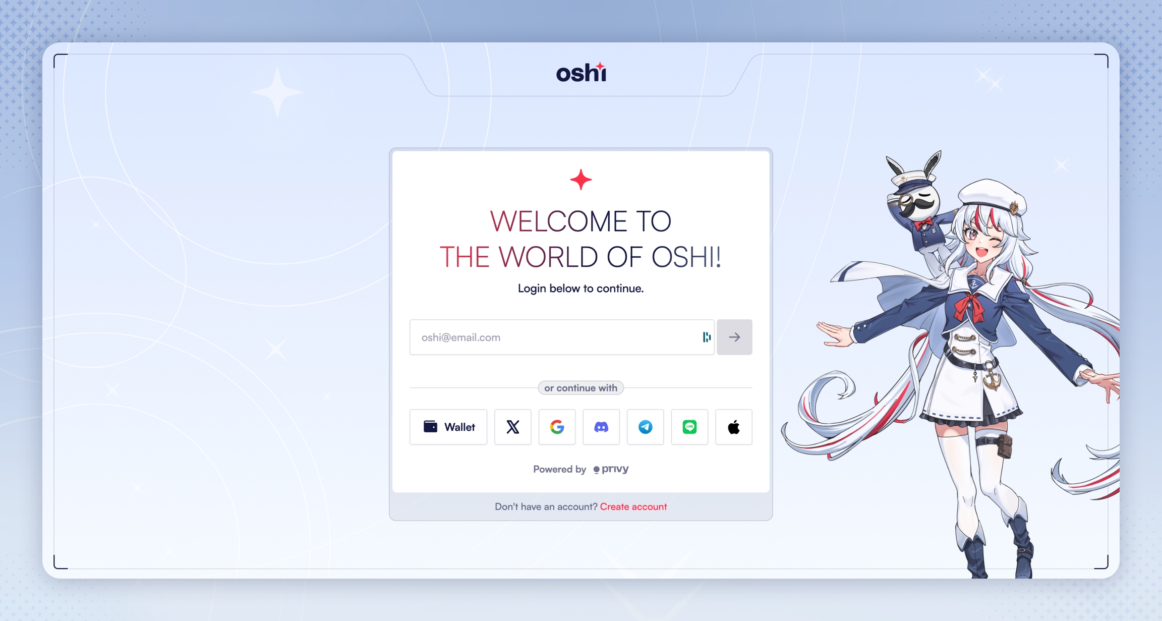 Head to gate2.oshi.co/login to get started and click Create Account.